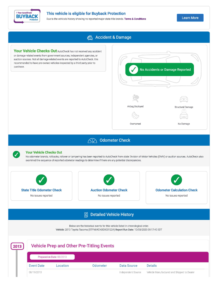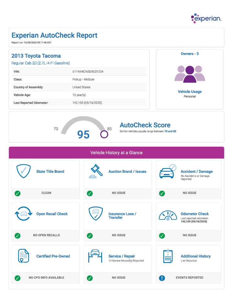 Vehicle Inquiry for 2013 Toyota Tacoma Regular Cab 2WD