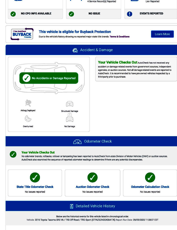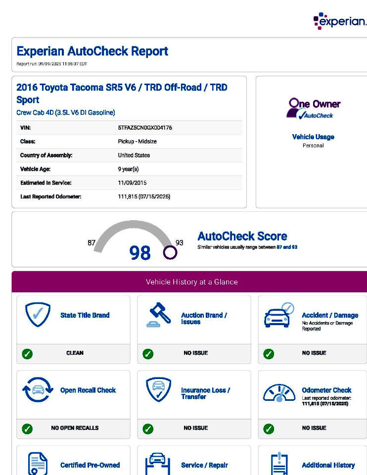 Vehicle Inquiry for 2016 Toyota Tacoma SR5 Double Cab 5' Bed V6 4x2 AT (Natl)