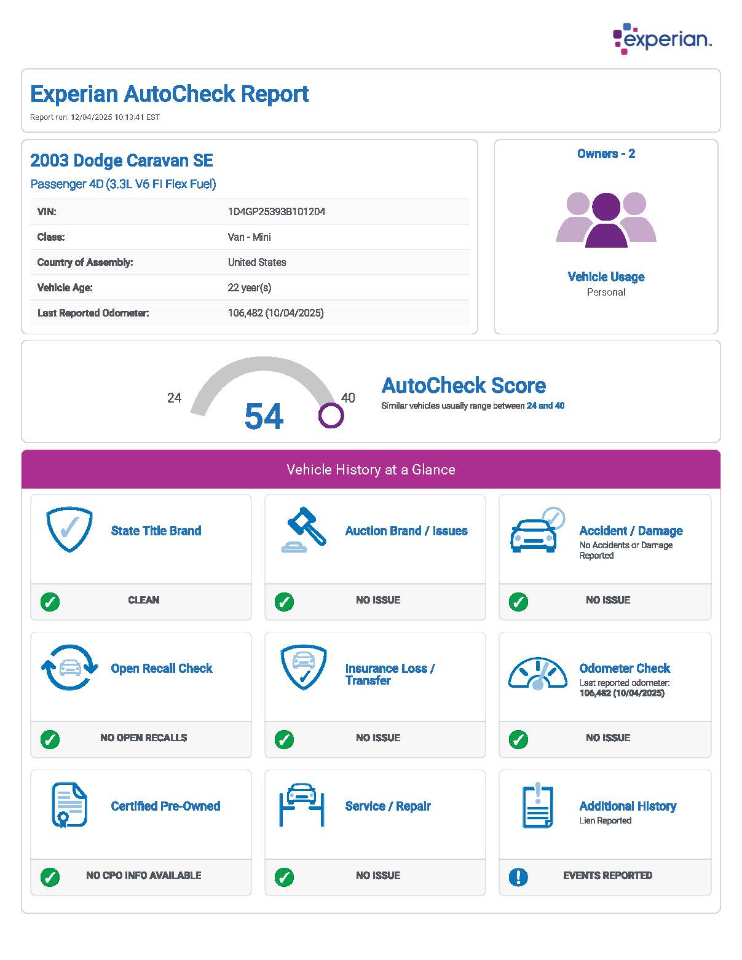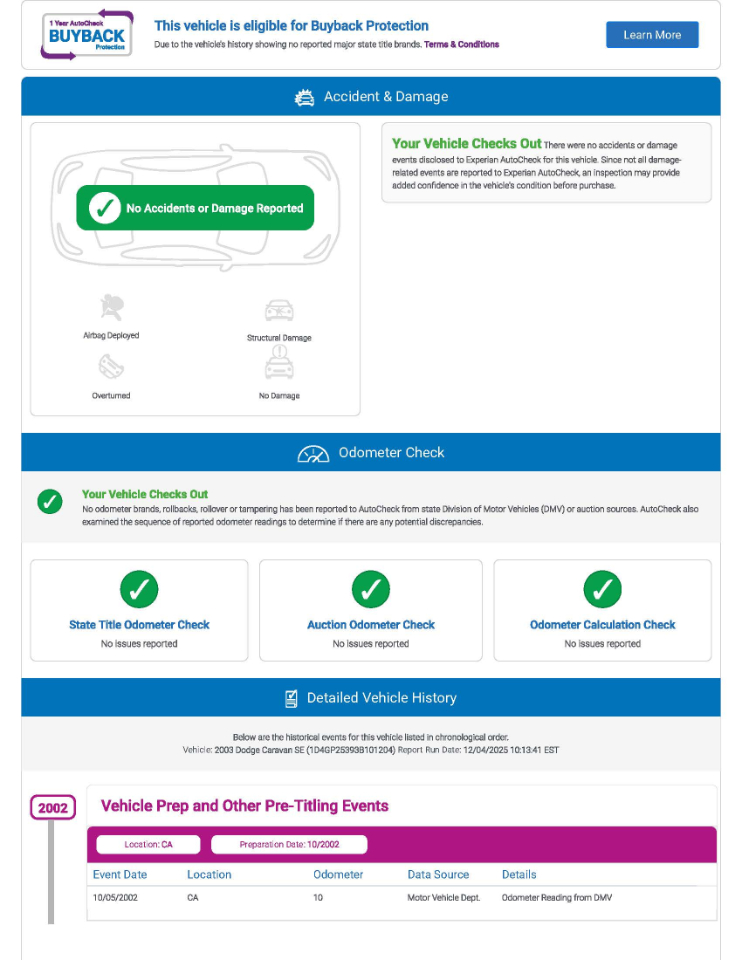 Vehicle Inquiry for 2003 Dodge Caravan SE
